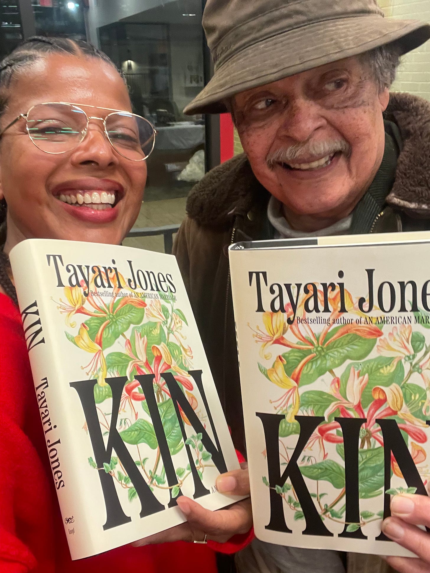 Last week, in Philadelphia, my Dad and I saw the brilliant writer, Tayari Jones give a talk about her newest novel, Kin. It was the last week of Black History Month (though we all know BHM is actually 365 days a year) and it was particularly special because before the book talk we had dinner at Honeysuckle, which feels like an homage to Black cultural history. Also, spoiler alert, there’s a town in Kin that is named Honeysuckle. We both enjoyed listening to Tayari Jones and Asali Solomon talk about the themes in Kin—friendship, mothers, HBCUs, class, the American South. Our families are old friends so we made sure to have a moment to congratulate her after the event. Afterwards, Dad and I started reading the book together. I read on the train back to New York and he read before going to bed. We’ve been checking in daily about Kin and I have to say I highly recommend reading a book with your parent (if you both have genuine interest in it). It’s really fun!